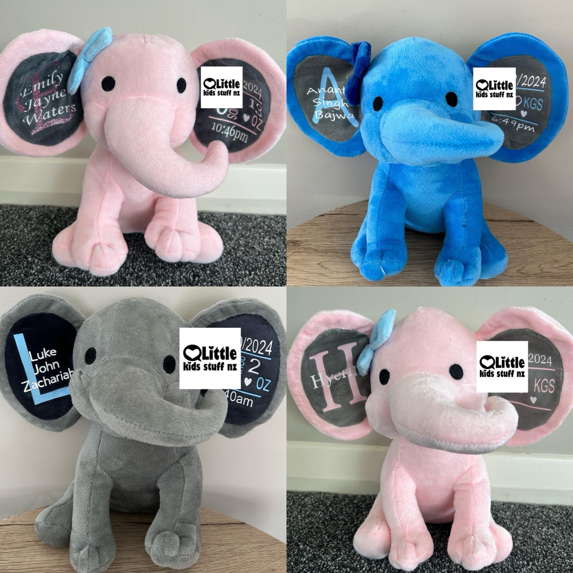 Custom printed birth details elephant